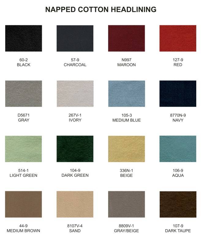 These Acme headliners are made from factory original patterns that have been in use since the introduction of each model, allowing for a perfect, factory-like fit for each vehicle. Most vintage Mercedes have interior trim panels adjoining the headliner. Acme includes extra matching material if the original panel was covered with the same material as the headliner. The headlining material is not guaranteed to match the original factory colors. All selections are custom made to order and non-returnable. Please specify your color selection with your vehicle make and model information on your order.