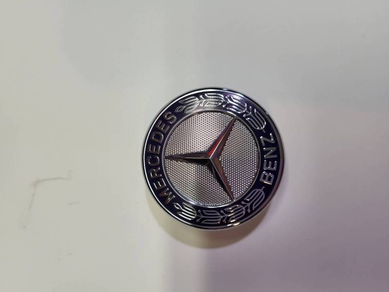 Genuine Mercedes grille badge for top of the Genuine Mercedes grille. The surround of the item is blue. Emblem attaches with 2 grommets, part number 222242, sold separately.